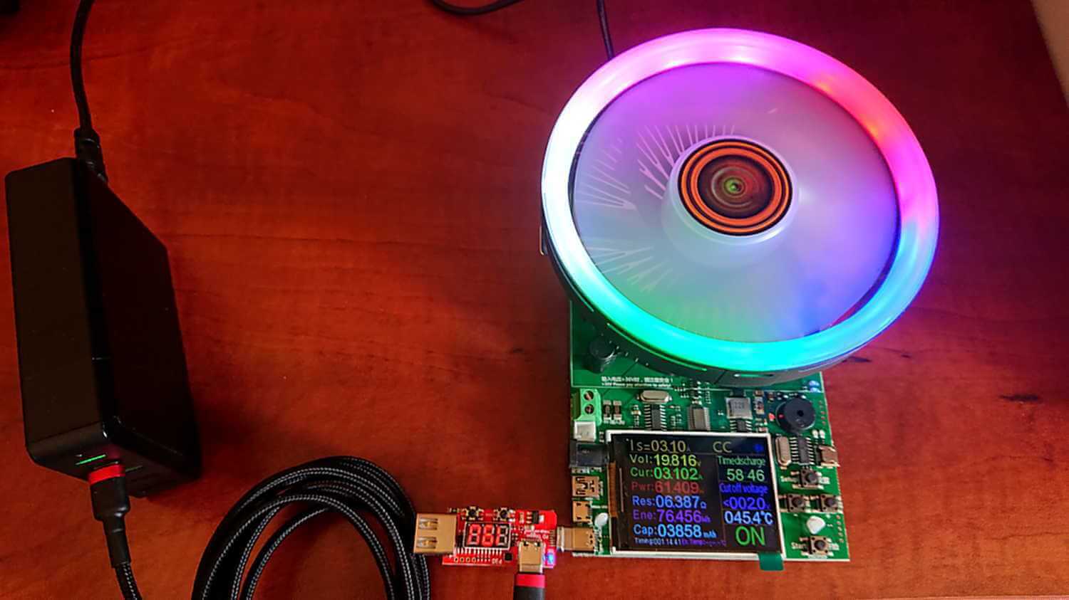 Elektronika dotarła, co prawda z mega poślizgiem przez COVID, ale już jest więc czas na testy. Port USB-C ma wydajność max 60W i taką właśnie mocą go przetestowałem. De facto było to nieco ponad 60W, ale uznajmy to za granicę błędu pomiarowego. Minęła ponad godzina i ładowarka śmiga bez problemu.