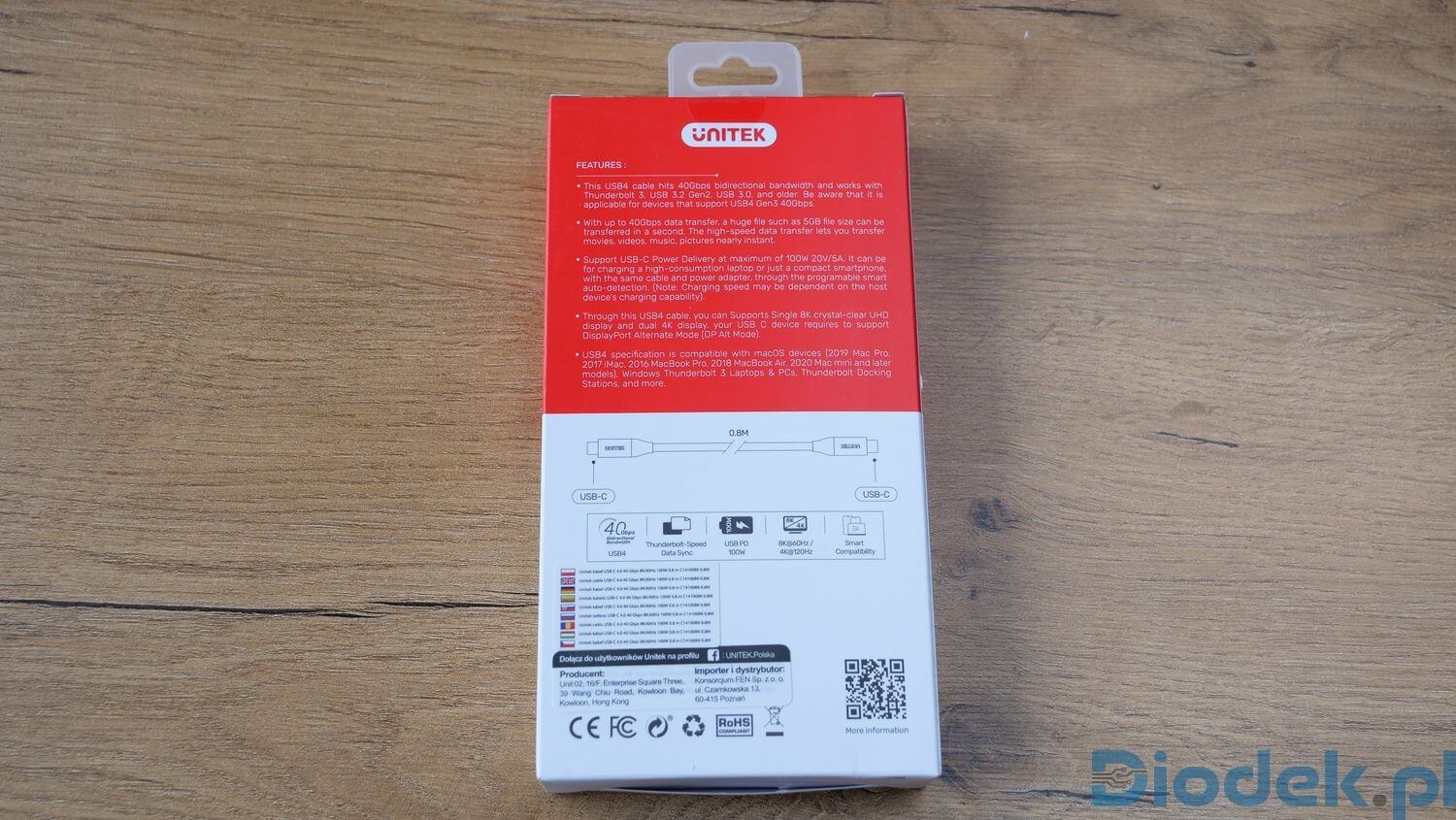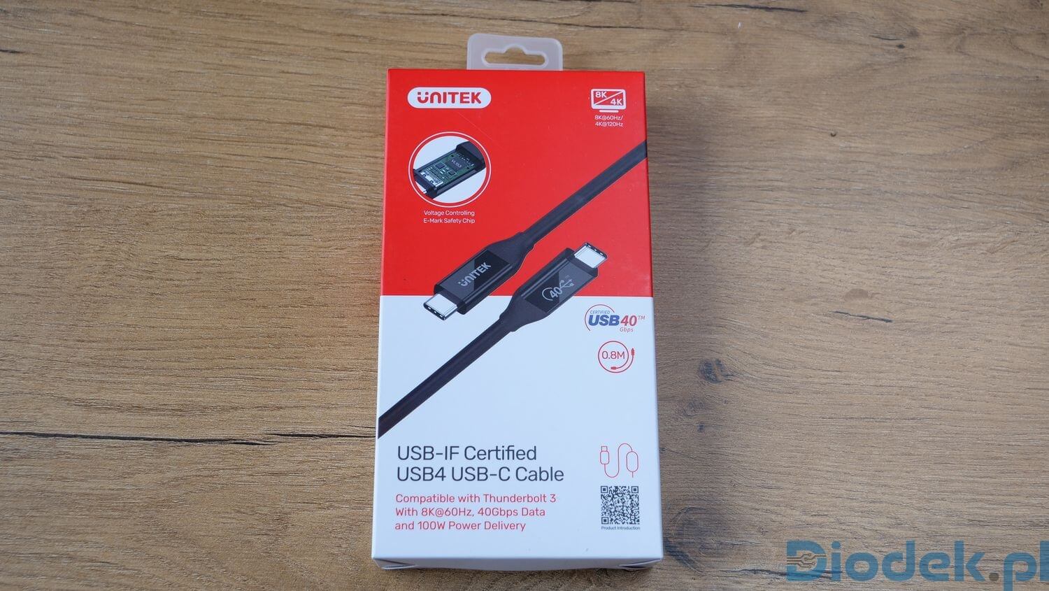 Jego długość wynosi jedynie 80 centymetrów. Dla wielu może być to utrudnieniem, lecz nie ma tutaj innego wyjścia. Certyfikowany przewód USB4 nie może być dłuższy. Wynika to z odgórnej specyfikacji, więc wszelkiej maści przewody które są dostępne w sprzedaży jako USB4, o długości większej niż 80 cm (2,6 stopy), nie są certyfikowane.