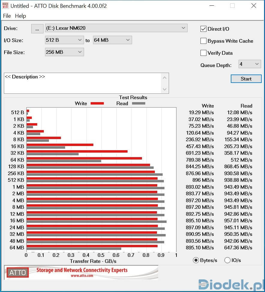 Aby sprawdzić jego wydajność w najlepszej możliwej opcji, testy wykonałem podłączając sprzęt do portu USB-C i USB-A o wydajności 10Gb/s.