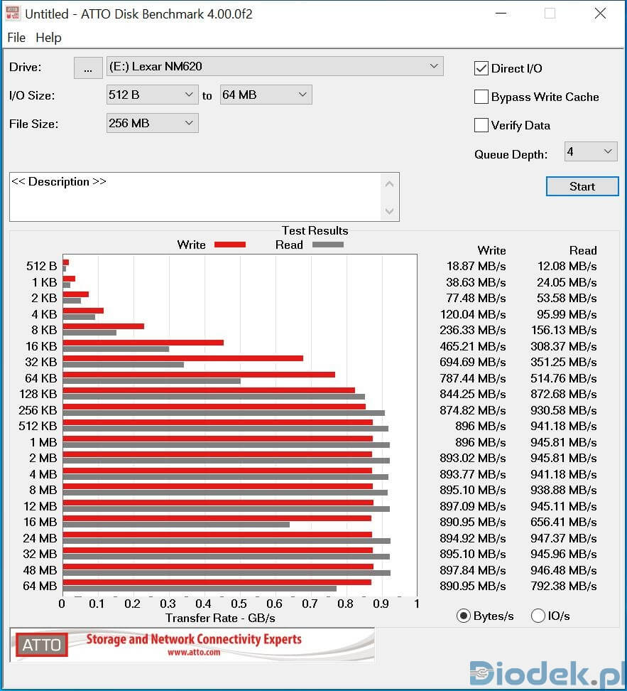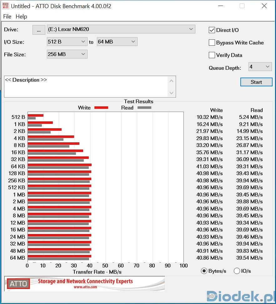 Wydajność na 10Gb/s jest bardzo zbliżona do testów obudowy UNITEK S1204B, co szczególnie dziwić nie powinno. Pytanie jak będzie z 20Gb/s co deklaruje producent. Niestety z racji aktualnych ograniczeń sprzętowych nie mam możliwości sprawdzenia pełnej wydajności jeżeli chodzi o szybkość. Dysk mam, karta pod PCI jest w drodze ale do szczęścia potrzebuję jeszcze jakąś obudowę 20Gb/s, a jeszcze lepiej 40GB/s (będzie przyszłościowo). Gdy wszystko uzbieram, uzupełnię ten wpis aby przedstawić Wam możliwie najrzetelniej testowany produkt. Dla chwilowego zobrazowania sprawy, przedstawiam Wam wykres pochodzący z tamtego wpisu.